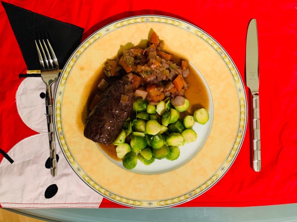 Im Winter ist was deftiges immer wieder lecker! 4 Rouladen zwischen Klarsichtfolie flachklopfen, mit je 1 TL Senf bestreichen, salzen, pfeffern. Je 3 Scheiben Bacon und 2 längs geviertelte Cornichons auf dem unteren Teil verteilen. 2 Zwiebeln in feine Ringe schneiden und ebenfalls auf darauf geben. Rouladen von der dicken Seite her zusammenrollen. Dabei den... Continue Reading →