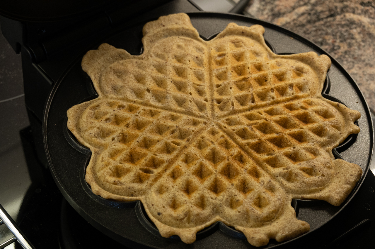 Vollkonrn-Nuss-Waffeln mit Ahornsirup