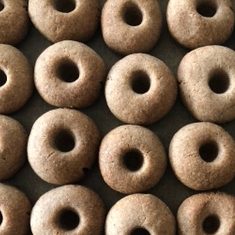 Aus dem Teig ca. 2 cm große Kugeln formen, flachdrücken und in der Mitte ein ca. 1 cm großes Loch ausstechen (mit der Spitze einer Spritztülle oder dem Stiel eines Kochlöffels). Plätzchen auf zwei mit Backpapier ausgelegten Backblechen verteilen.
