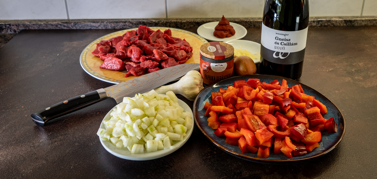 Passend dazu gab es einen ungarischen Rotwein: 2016er Gneisz és Csillám vom Weingut Weninger Pincészet, eine Cuvée aus Blaufränkisch, Merlot, Pinot Noir und Cabernet Franc
