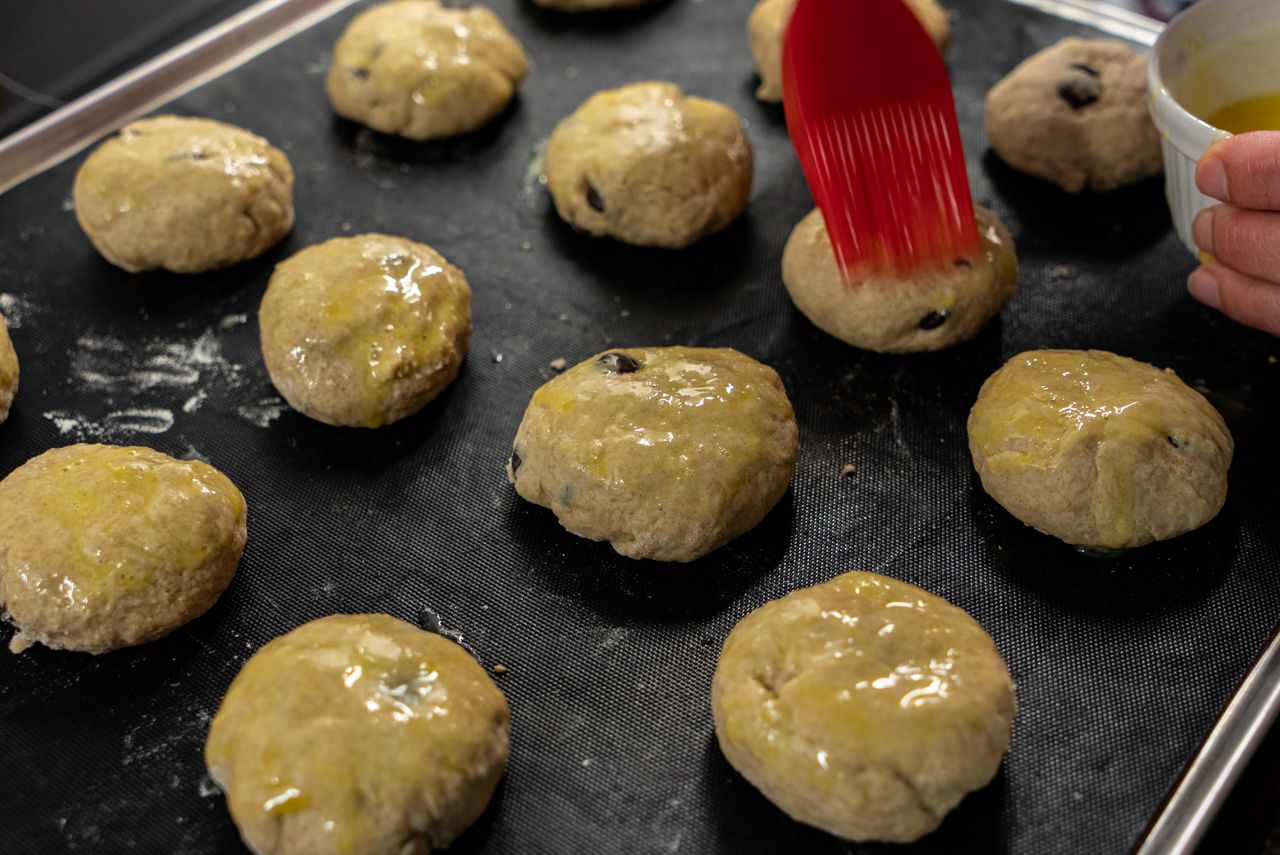 1 Ei verquirlen und die Brötchen damit bepinseln.