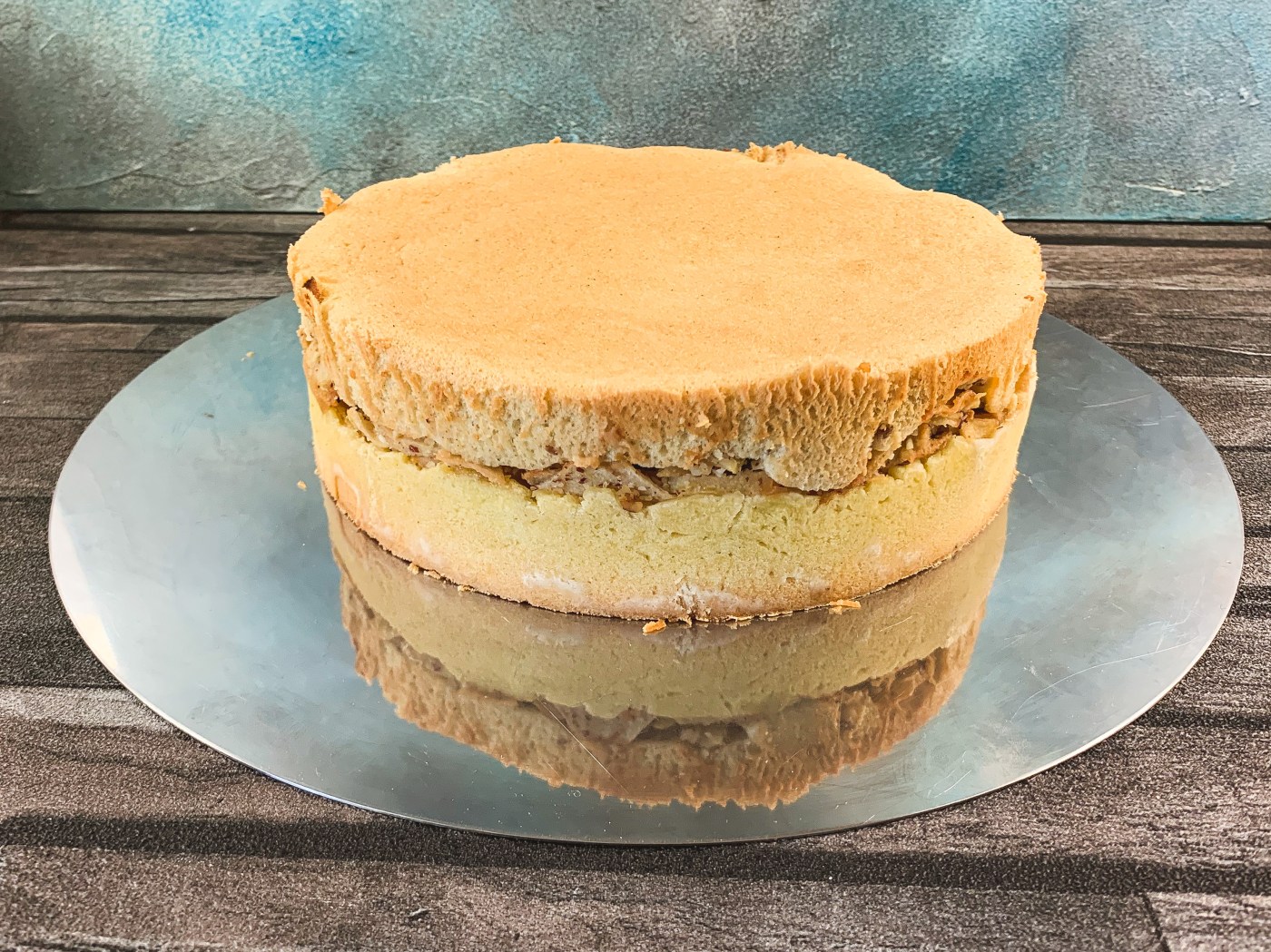 Die Bisquitmasse auf dem vorgebackenen Kuchen verteilen und nochmals ca. 20 Minuten backen.