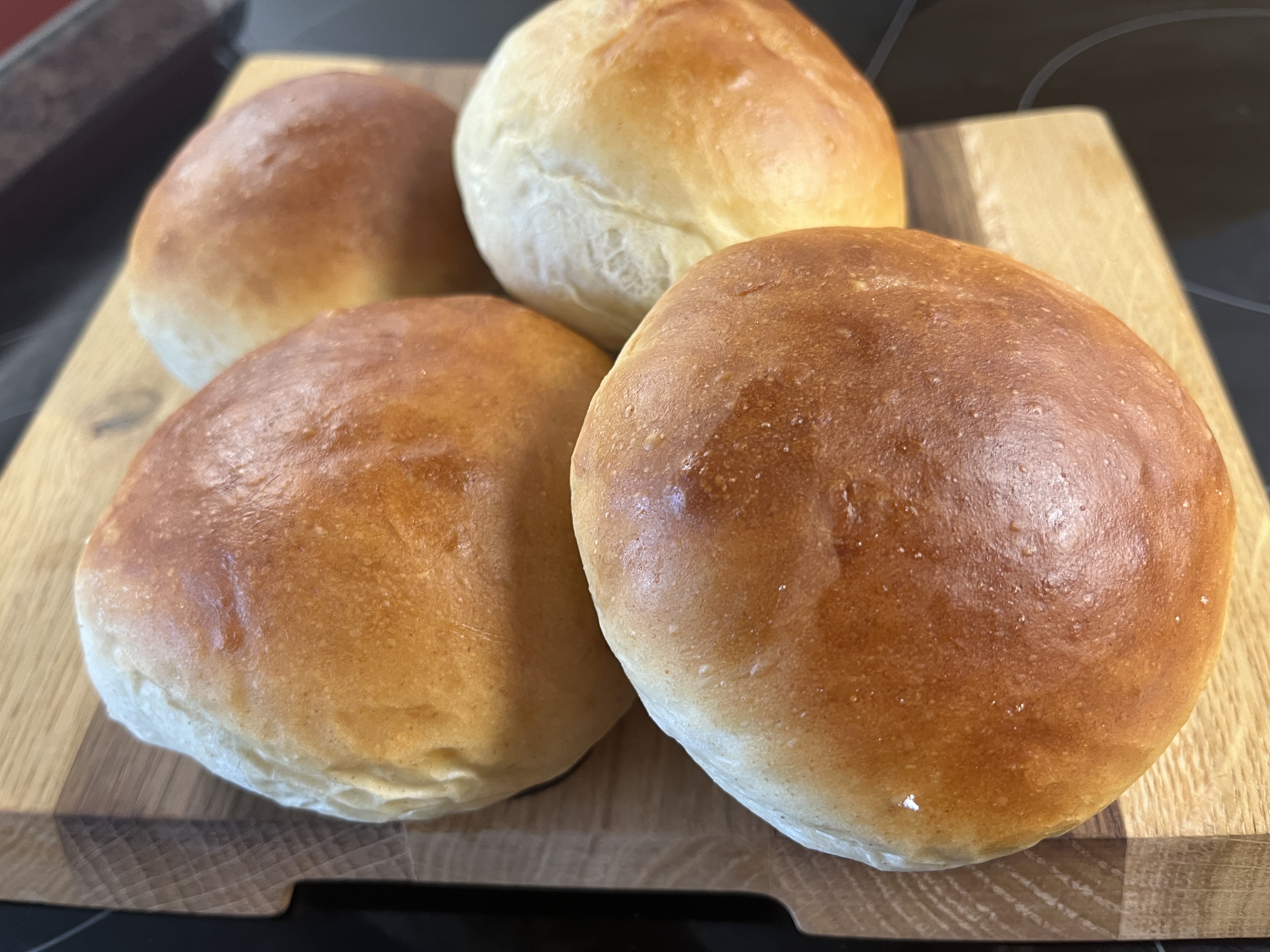 Die Semmeln eignen sich prima als Burger-Buns und sind sehr lecker als Frühstückssemmeln.