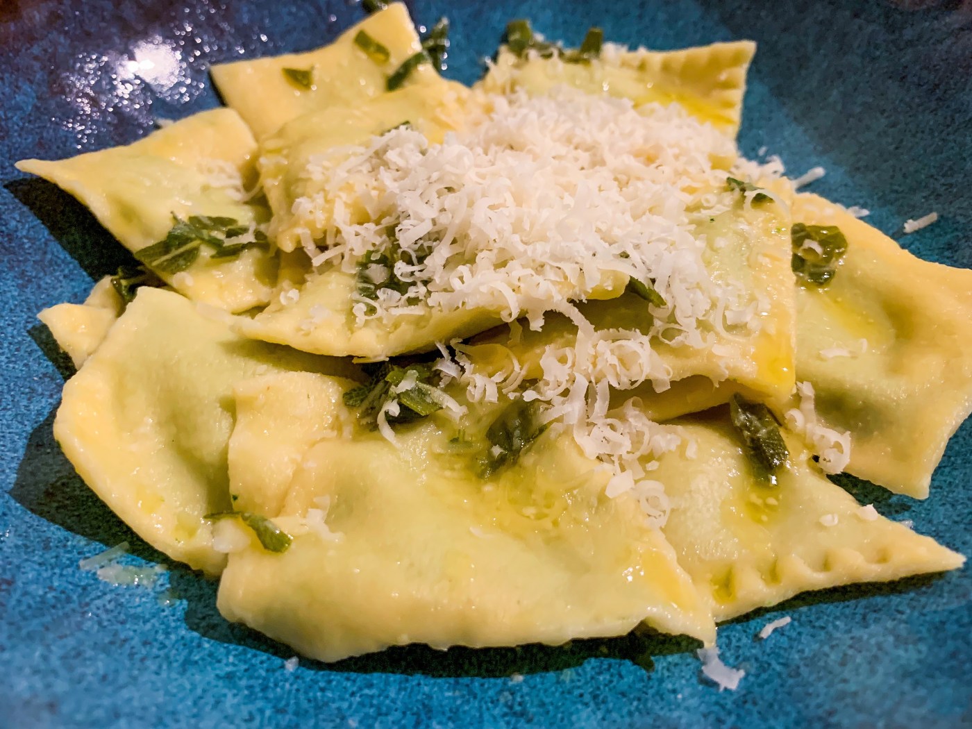 Mit einem Schaumlöffel aus dem Wasser heben und sofort mit der Salbei-Butter übergießen und mit Parmesan bestreut heiß servieren.
