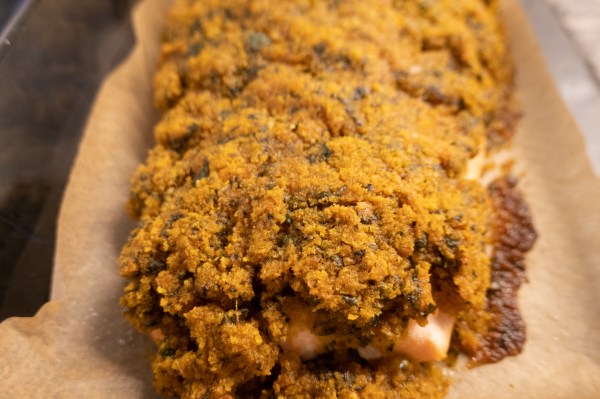 Auflaufform mit 1 EL Olivenöl ölen 4 Stücke Lachsfilet (à ca. 160 g) hineingeben, mit 2 EL Ölivenöl beträufeln, mit Salz und Pfeffer würzen. 1 Bund glatte Petersilie grob hacken, zusammen mit 1/2 TL getrocknetem Estragon, 1-2 TL Tomatenmark, 2 Knoblauchzehen und 80 g Semmelbröseln im Blitzhacker fein zerkleinern, 100 g weiche Butter Unterkneten. Bröselmischung... Continue Reading →